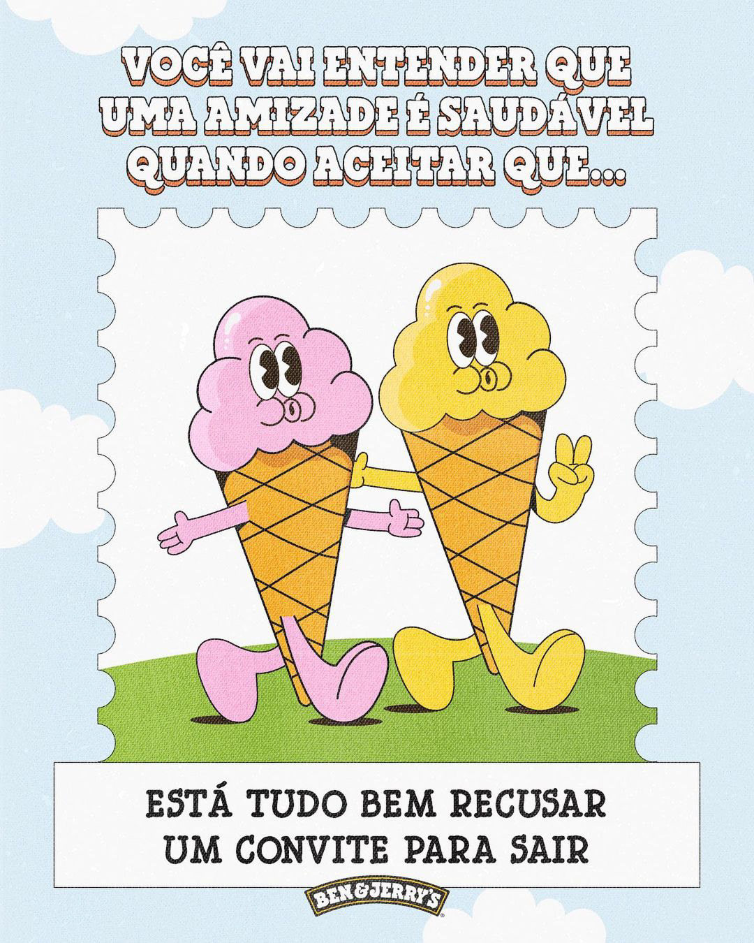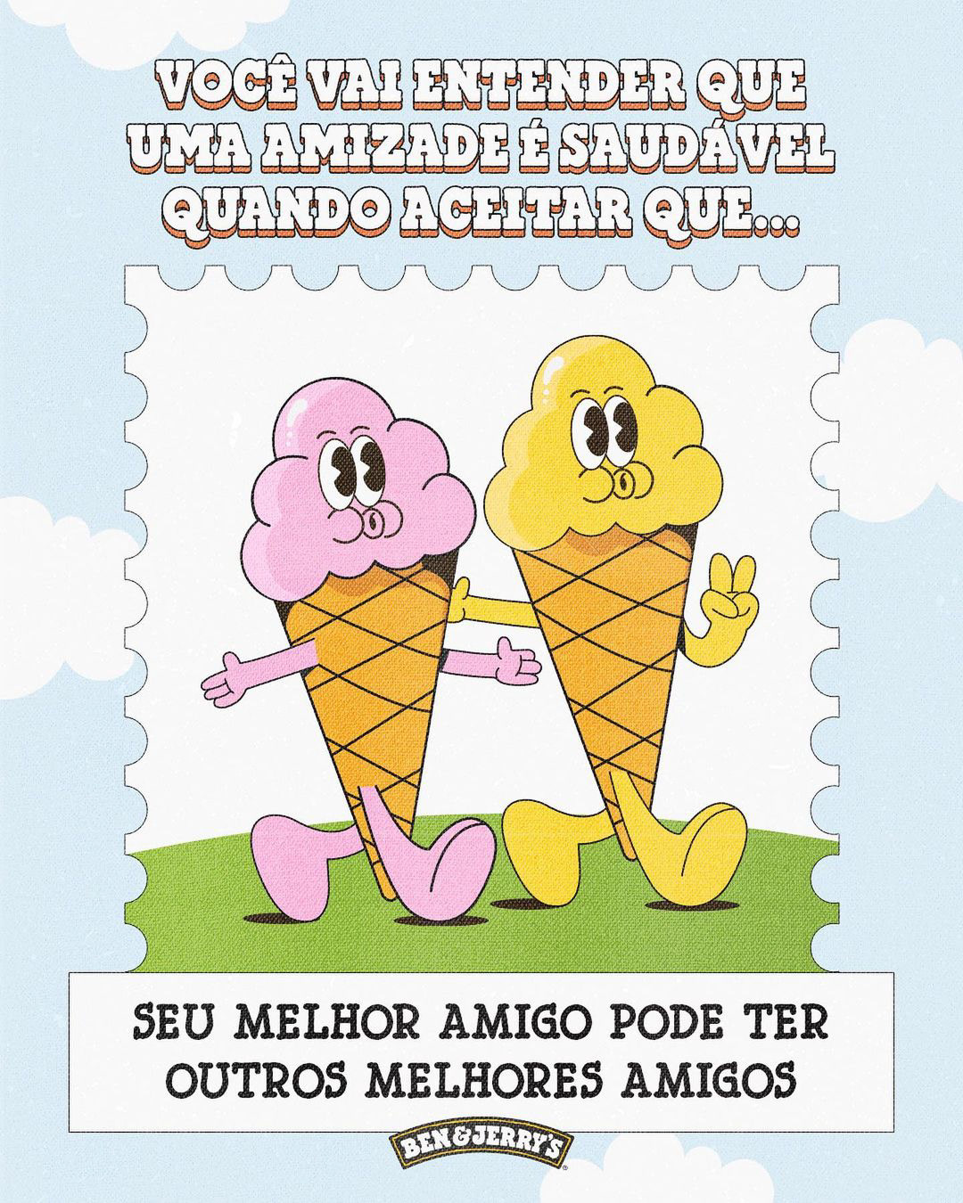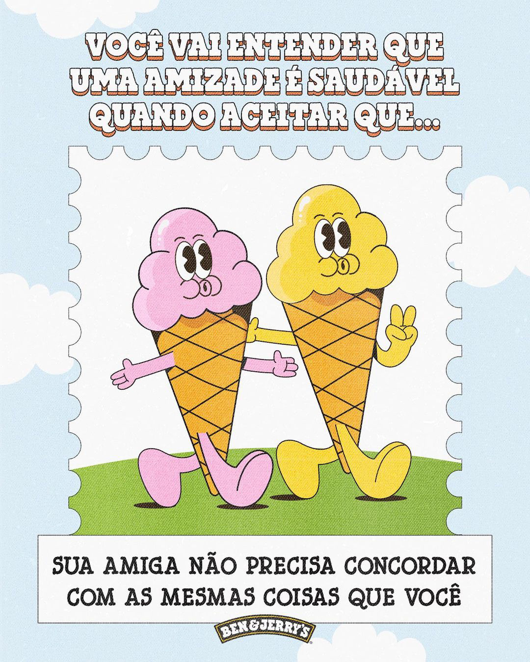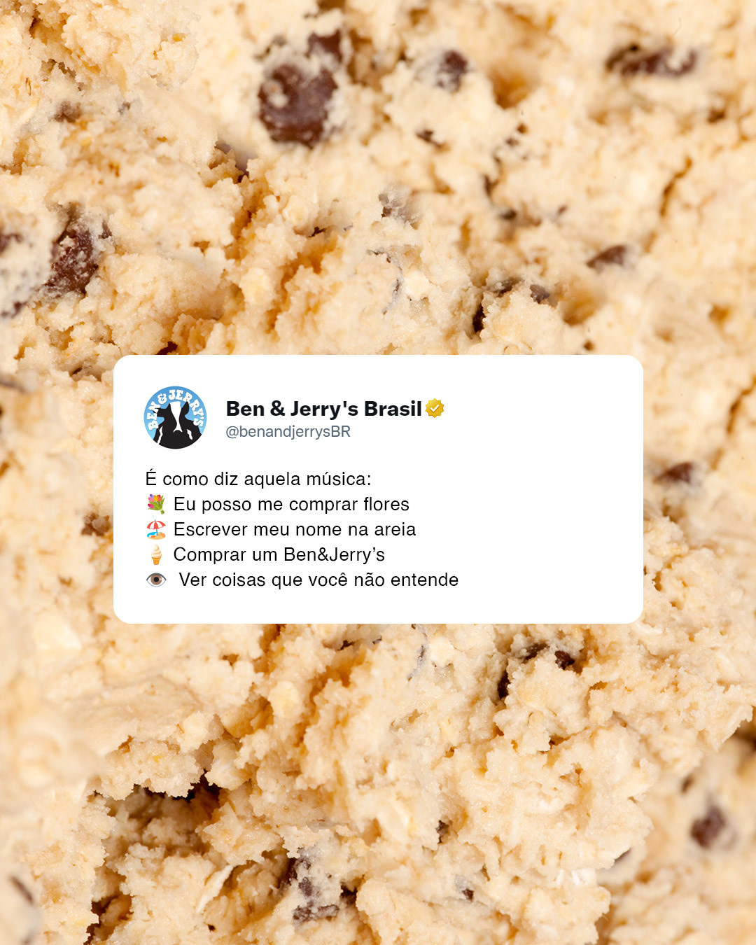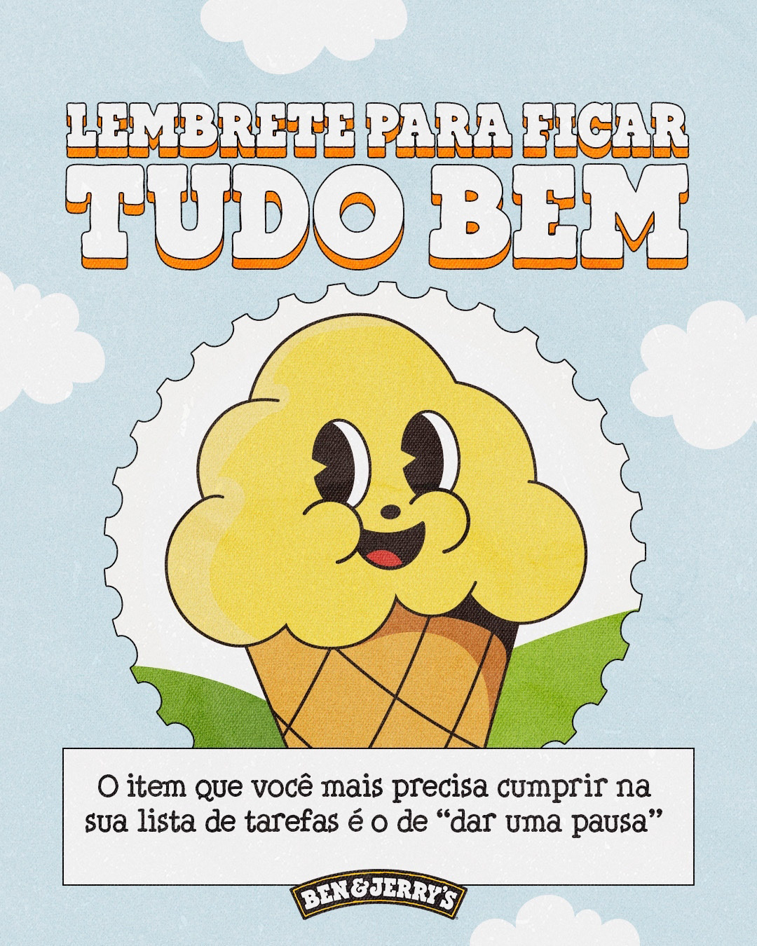 A Ben&Jerry's é uma marca de sorvetes global que pauta sua comunicação no senso de comunidade: engajando com pessoas que são apaixonadas por sorvetes mas que também prezam por responsabilidade social. É uma marca que não tem medo de se posicionar como antirracista, apoiadora dos direitos LGBTQIAP+ e que luta contra o machismo. Além de espelhar essa personalidade da marca nos conteúdos, buscamos também trazer peças com foco nos atributos dos sorvetes e jogos de interação com o público.