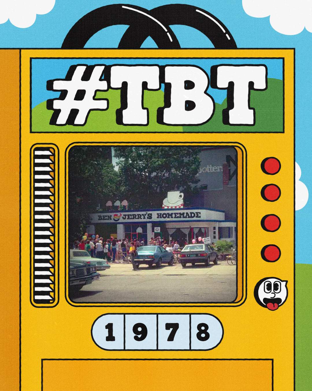 No #tbt de hoje, vamos voltar para fevereiro de 1978, quando nossos queridos Ben e Jerry abriram sua primeira Scoop Shop de sorvetes. Ela ficava localizada em Vermont, em um antigo posto de gasolina. Na época, mesmo com camadas de neve no chão, havia filas de pessoas para provarem as deliciosas bolas de sorvete em cima das nossas casquinhas crocantes. ❄️ E, para a nossa surpresa, já naquele início Ben e Jerry ficavam com o estoque de sorvetes esgotados.