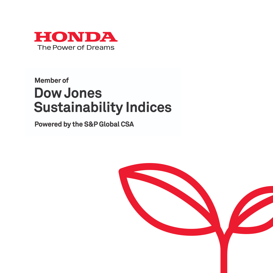 A Honda Motor Co., Ltd. foi reconhecida mais uma vez por suas iniciativas globais, sendo selecionada, pelo quinto ano consecutivo, para compor o Índice Mundial de Sustentabilidade da Dow Jones. Esse índice avalia a sustentabilidade das principais empresas do mundo nos critérios econômicos, ambientais e sociais, escolhendo marcas que demonstram excelência geral nestes índices.