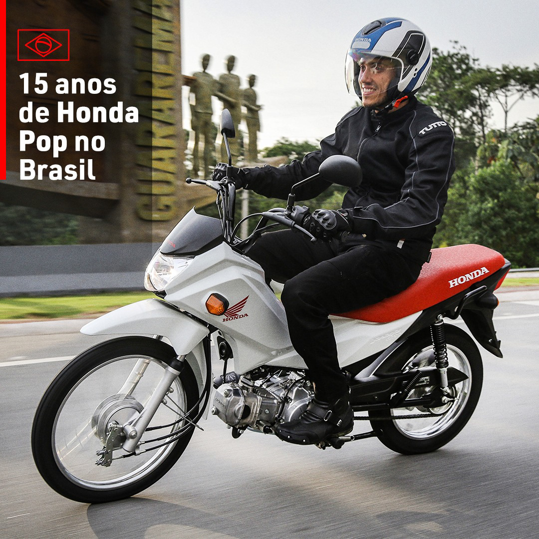 A Honda Pop completa 15 anos no mercado brasileiro! O modelo genuinamente nacional foi desenvolvido pela equipe local de engenharia da marca, pensando em oferecer uma mobilidade acessível para milhares de brasileiros.
