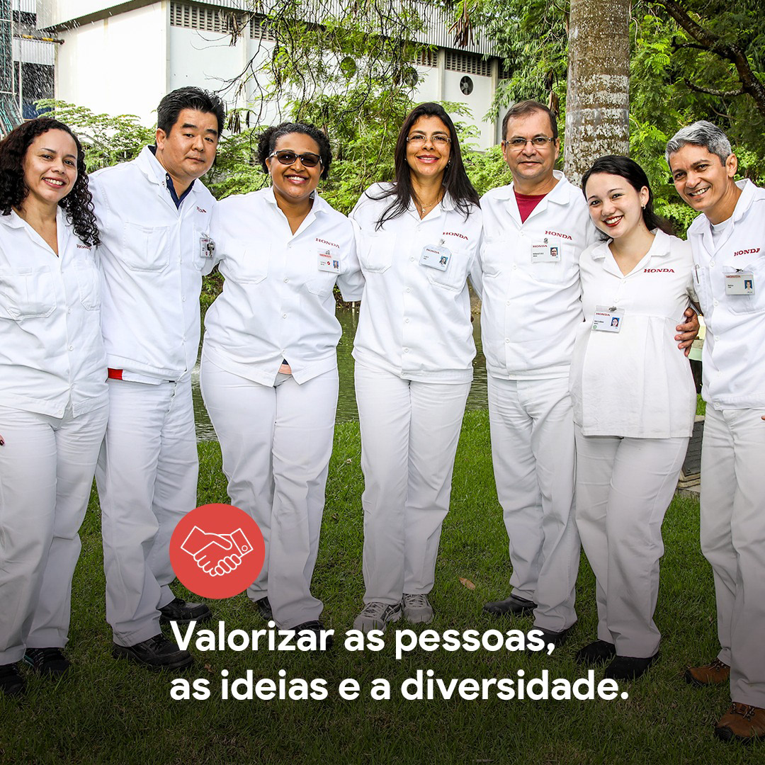 O respeito é um dos principais pilares da filosofia Honda. A ética, a igualdade, a confiança e a valorização das ideias e características individuais garantem um ambiente aberto em que cada um é capaz de manifestar o melhor de si. O respeito também nos guia na forma como interagimos com os clientes, o meio ambiente e a sociedade. Conheça mais sobre a nossa filosofia: www.honda.com.br/carreira-na-honda/filosofia-honda