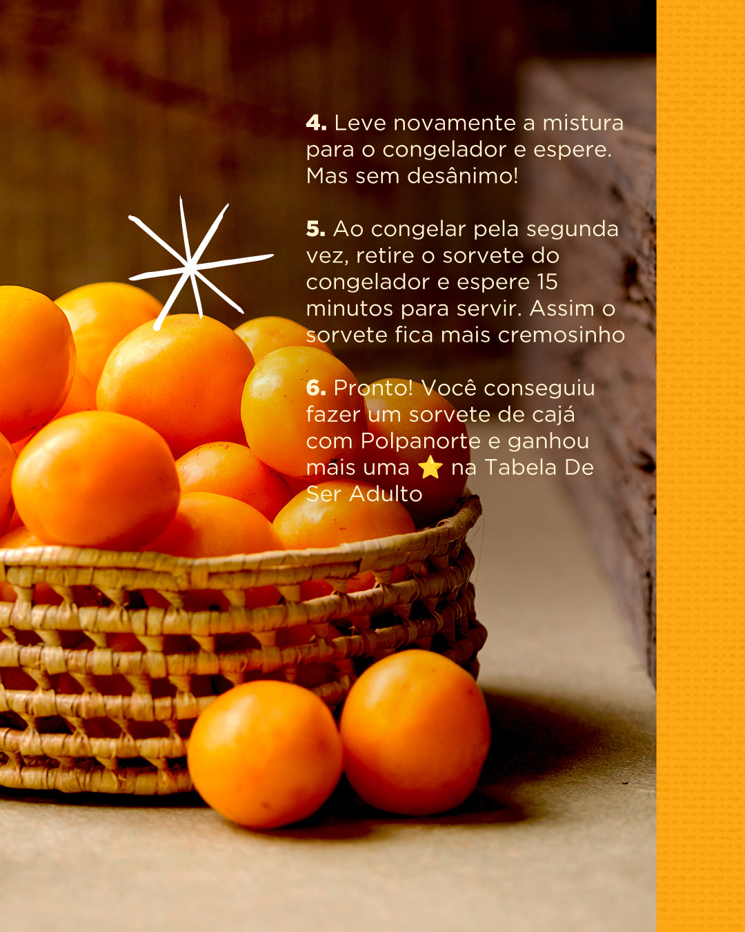 Tropical, refrescante e saboroso 🏝️ O sorvete com polpa de cajá é fácil de fazer e você pode testar essa receita em casa com a nossa ajuda. Arraste o post para o lado, salve a receita e depois compartilhe com a gente como ficou! 😛 #FazComPolpa
