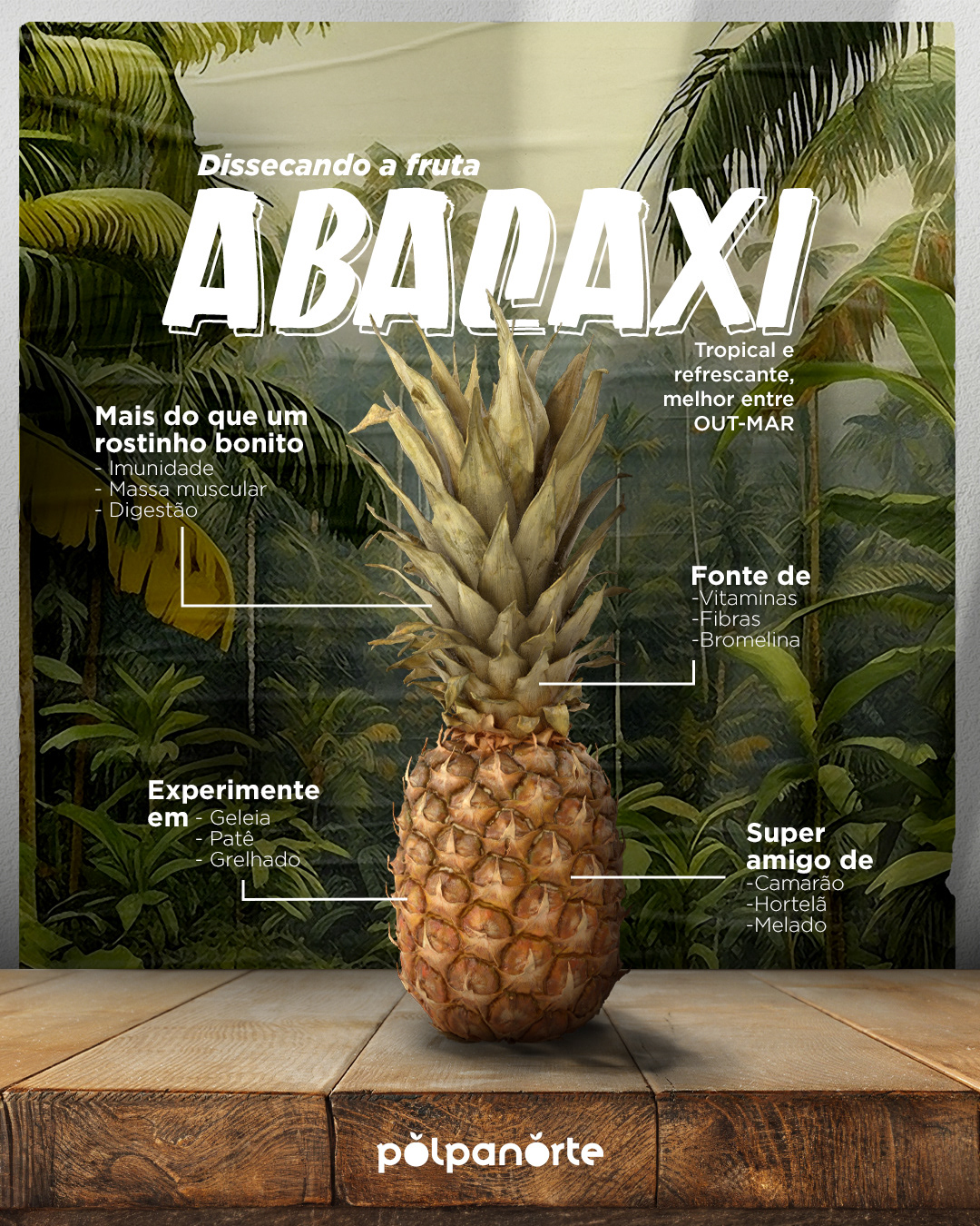 Saboroso e suculento, o abacaxi é a marca registrada do Brasil 🍍🇧🇷 Nossa queridinha fruta tropical pode ser consumida tanto in natura quanto em sucos, sobremesas e até mesmo em pratos salgados. Confira mais curiosidades sobre o abacaxi na imagem do post e experimente o suco de polpa dessa fruta 💛 #Abacaxi #Polpanorte