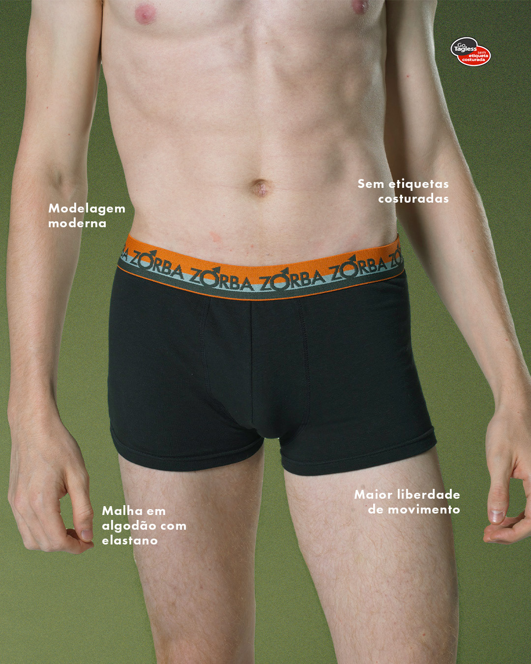 Ops! Nosso modelo foi pego no flagra usando uma cueca confortável, macia, estilosa e com tecnologias que protegem a pele. Só podia ser Zorba.
